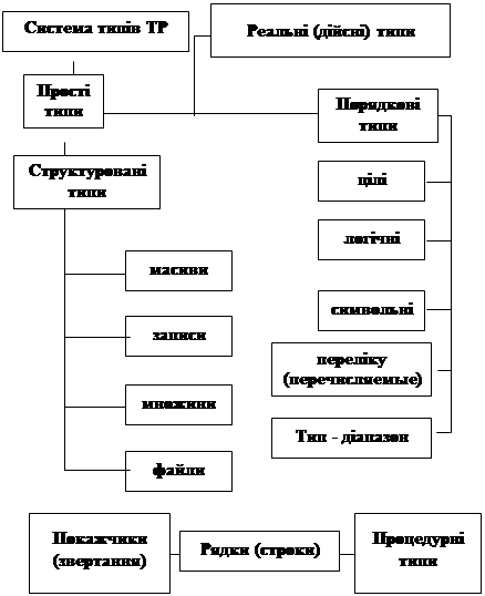 Будь-яка константа, змінна, значення функції або виразу характеризується своїм типом. Тип цих об’єктів визначає множину допустимих значень, які може мати об’єкт, а також множину допустимих операцій над об’єктами. Крім того тип визначає і формат внутрішнього представлення значення об’єкту