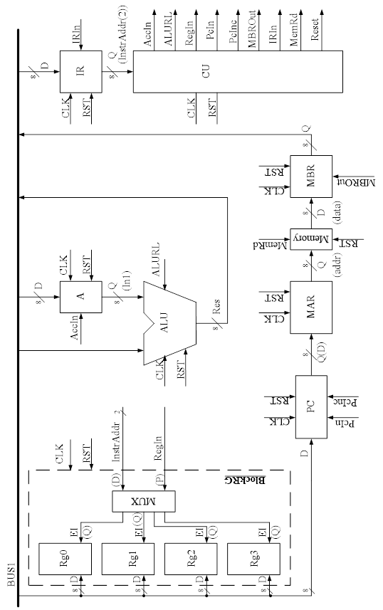 На рис. 1 показана структурная схема процессора с одной магистралью.