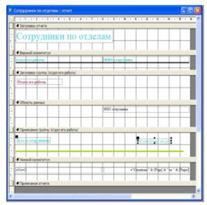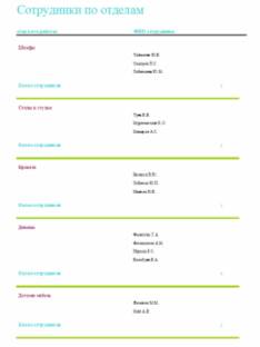 а) Отчет, содержащий ФИО сотрудников, сортированных по отделам