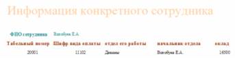 б) Отчет, содержащий полную информацию на конкретного сотрудника