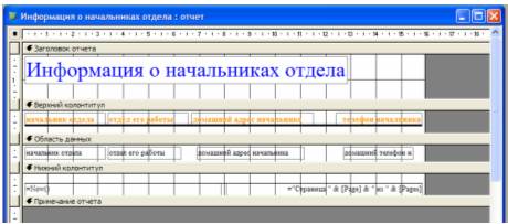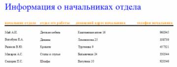 · “Отдел его работы” с атрибутами: отдел его работы, начальник отдела, домашний адрес начальника, домашний телефон начальника.