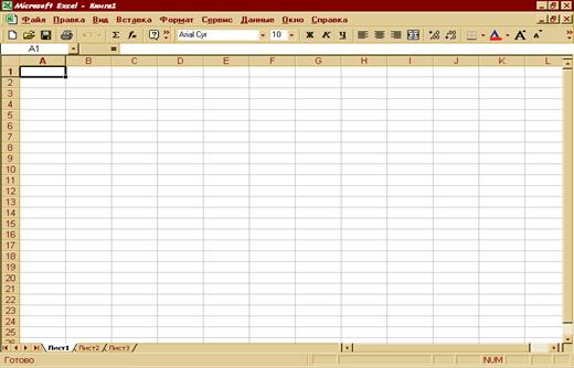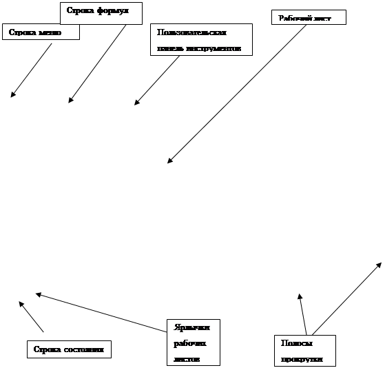 ярлычки рабочих листов, содержащих стандартные имена (Лист1, Лист2, Лист3 и т.д.), которые по желанию пользователя могут быть добавлены, удалены или переименованы под конкретную задачу.