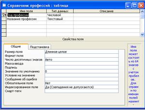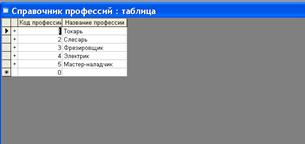 1. Создание таблицы «Справочник профессий».