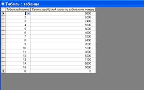 | табельный номер | сумма заработной платы по табельному номеру |