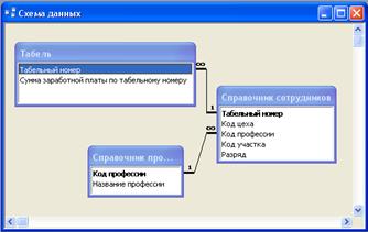4. Задание связей между таблицами «Справочник профессий», «Справочник сотрудников» и «Табель»