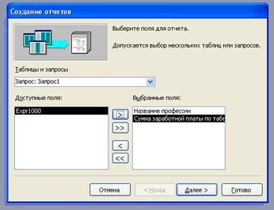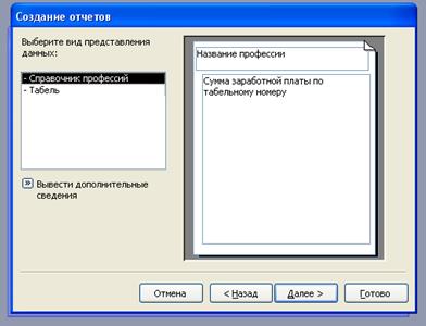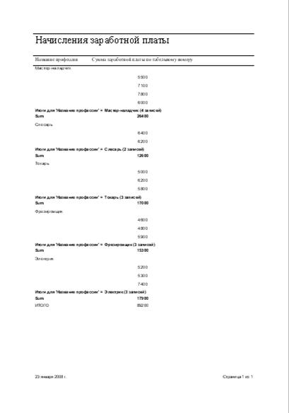 6. Создание отчета «Начисления заработной платы по профессиям»