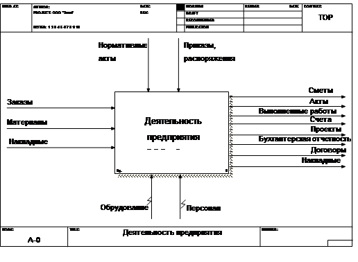 Концептуальная диаграмма «Деятельность предприятия» представляет собой самое общее описание деятельности организации и ее взаимодействия с окружающей средой. Она нужна для того, чтобы представить, какое место занимает деятельность инженера АСУ в общей деятельности организации.