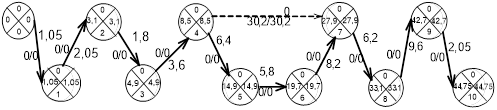 После построения графической модели следует рассчитать оставшиеся параметры элементов сети: сроки наступления событий, резервы времени, полный и свободный резервы времени.