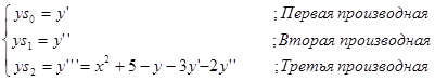 При каждом вычислении левых частей этой системы происходит дифференцирование y, y’ иy’’ , т. е. вычисление соответственно новых значений y’, y’’, y’’’ .