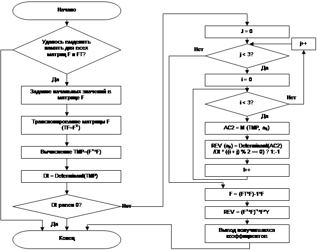 printf ("\nТак, как определитель матрицы TF*F равен 0,\n"