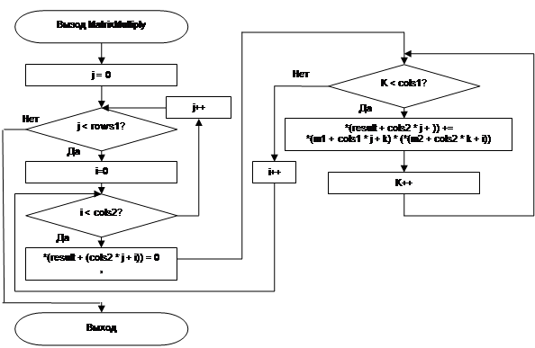 Блок-схема функции MatrixMultiply из программы 30.c. 12