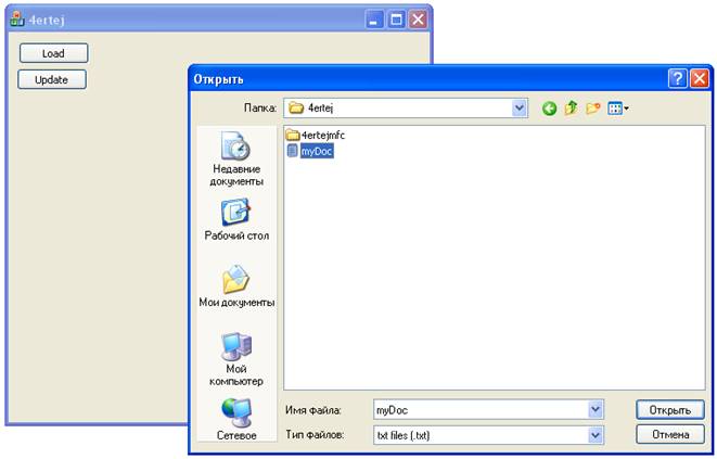 После запуска программы пользователь нажимает на кнопку ”Load”, которая вызывает стандартное окно для открытия документа. В новом диалоге выбирает файл для считывания исходных данных (рисунок 2). И после того, как пользователь выберет правильный файл функция OnBtnLoad() нарисует в точности то, что изображено на рисунке 5, а это то, что и требовалось. Если файл содержит величины не соответствующие условию задачи, тогда функция OnBtnLoad() выведет сообщение ”Can’tloadparams”, то есть исходные данные не верны.