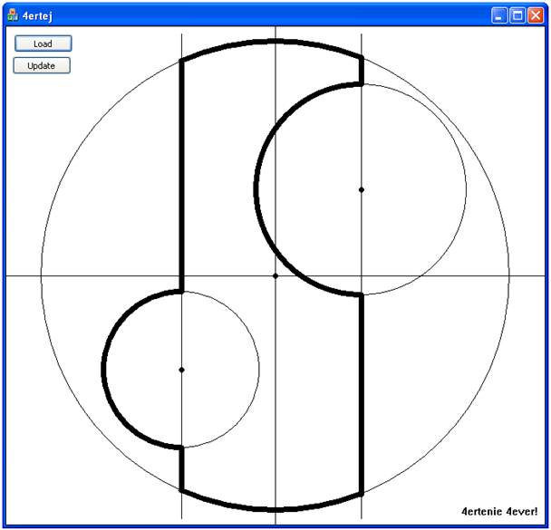 Кнопка ”Update” предназначена для обновления изображения фигуры, после исправления данных (x1,y1,R1,x2,y2,r2,x3,y3,r3), которые считываются из выбранного пользователем файла (рисунок 3).