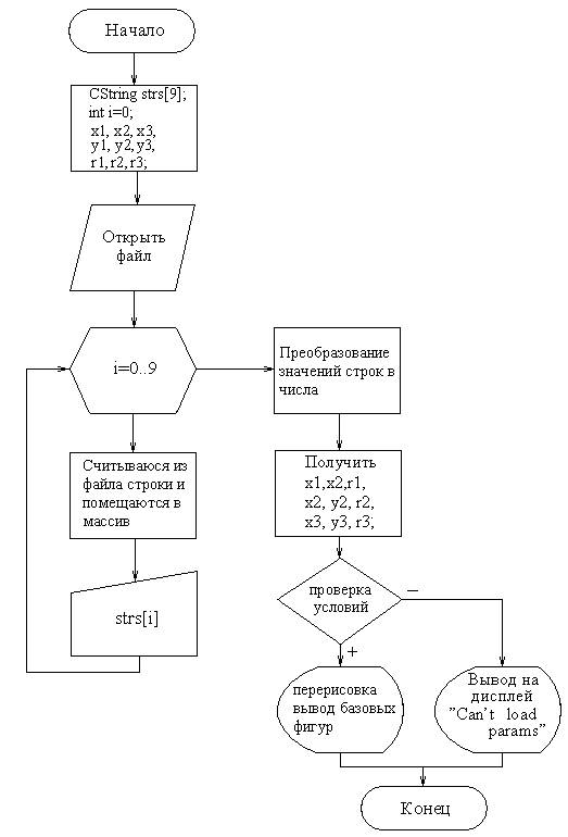 тогда исходные данные верны. Затем выполняется построение фигуры. В случае ошибки программа выдает сообщение ”Can't load params”, то есть искомые данные не соответствуют варианту.