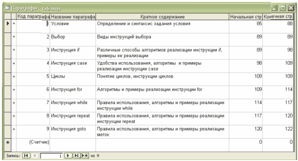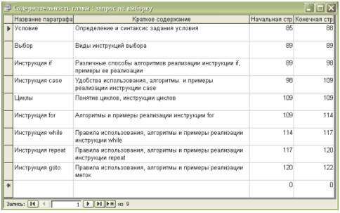База даних «Теорія та практика прикладного програмування» призначена для зберігання, обробки та пошуку інформації про зміст окремих глав підручника з програмування.