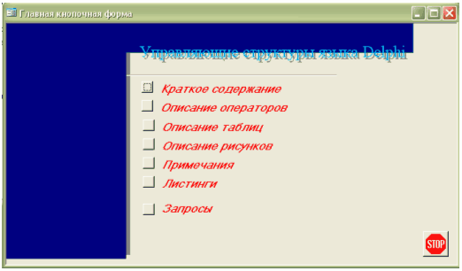 (Літературне джерело: “Культин Н.Б. Основы программирования в Delphi 7. – СПб.: БХВ-Петербург, 2003. – 608 с.: ил”. Розділ: “Глава 2. Управляющие срук-туры языка Delphi”, сторінки: 85–123)