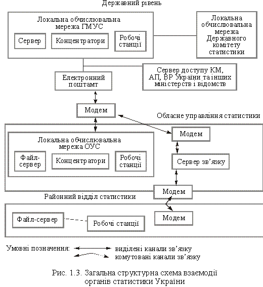 організується контрольований доступ до статистичних фондів з боку інших міністерств і відомств. На цьому рівні здійснюється об’єднання обласних фрагментів у глобальну мережу статистики України.