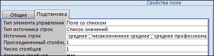 Рисунок 2 Мастер подстановок для поля "Образование"
