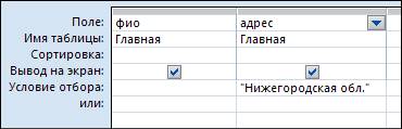 Запрос на выборку. Выберем из главной таблицы респондентов, которые проживают в Нижегородской области.