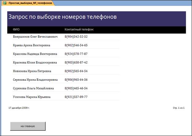 Рисунок 11 Отчет по запросу "Простая выборка"