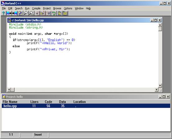 6.Сборка и выполнение программ в интегрированной среде Borland C++ 3.1