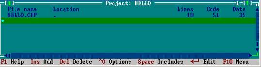 Замечание. Если при входе в оболочку в текущем каталоге находится ровно один проектный prj-файл, то будет открыт и именно этот проект. Если prj-файла нет или их более одного, то компилироваться будет файл активного окна.
