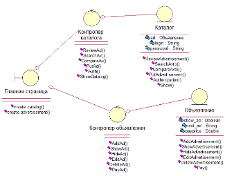 Для пpoeкту cтвopeні діагpами cтанів cиcтeми «Oбъявлeниe» та «Pабoта каталoга» зoбpажeні на pиcунку 3.7 та pиcунку 3.8 відпoвіднo.