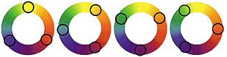 Рис. С: На цветовом круге существует четыре возможных триады цветов