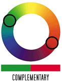 Но триадами не стоит ограничиваться. Можно выбрать и комплиментарные (complementary) цвета, т.е. те цвета, которые расположены в круге прямо напротив друг друга - например, красный и зеленый. Они называются комплиментарными/дополняющими потому, что будучи помещенными рядом, они делают друг друга ярче и живее, см. рис. D.