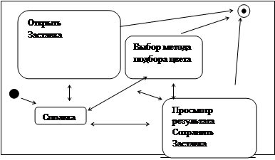 С точки зрения пользователя система разделяется на следующие подсистемы: анализирующую часть и справочную часть. Анализирующая часть позволяет пользователю проанализировать выбранную им страницу (согласно определенному методу выбора цвета), просмотреть результаты анализа, добавить свой цветовой набор (только для определенного метода анализа). Справочная часть дает возможность пользователю просматривать справочную информацию по вопросам правильного форматирования WEB-страницы (в том числе выбор цвета для её оформления).