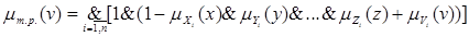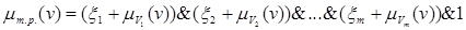 значений выходного параметра V, для элементов которого степень истинности правила modus ponens для нечеткой схемы вывода