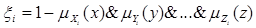 . Величины x,y,...,z - конкретные значения входных параметров X, Y,...,Z.