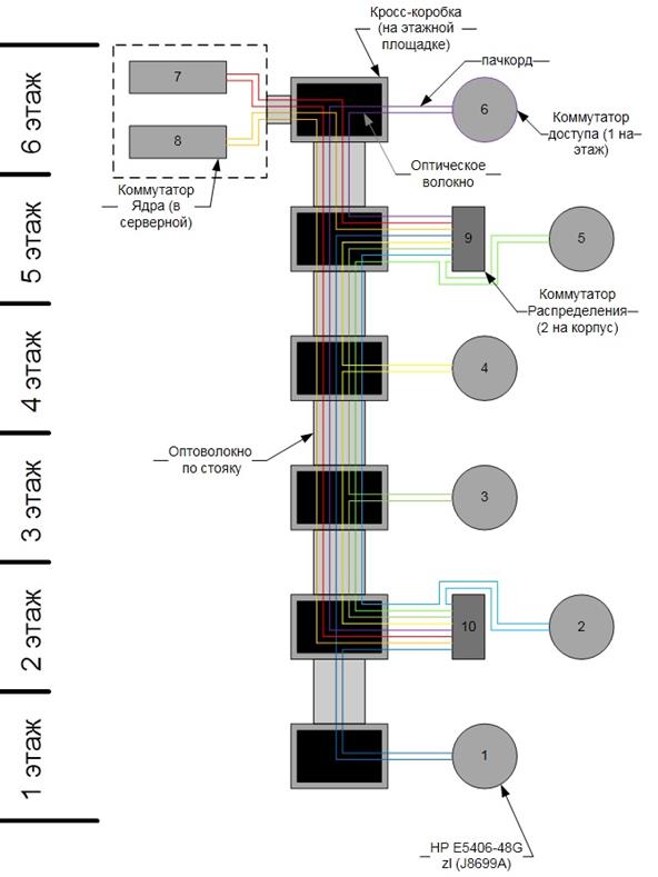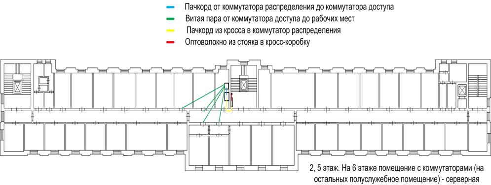 В проекте используется многомодовое волокно, так как планируется частая видеоконференция с разными корпусами.
