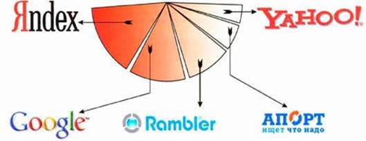 Среди ведущих поисковых машин на данный момент - Яndex, Google, Rambler, Апорт! и др.
