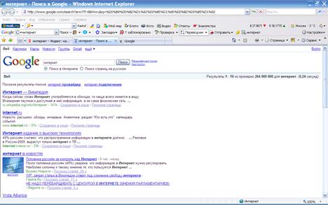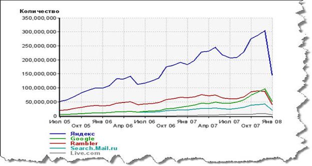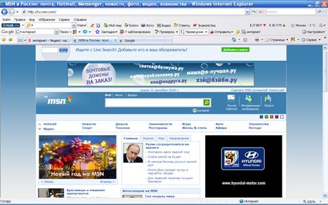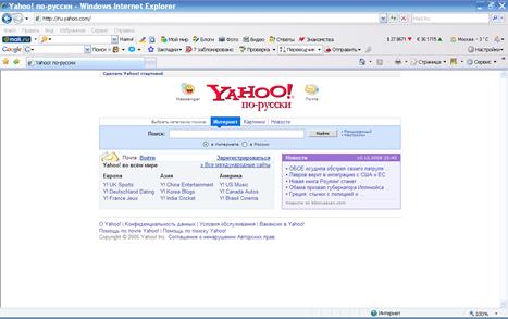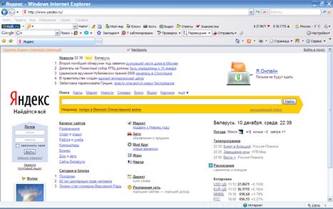 1997г. В системе производится поиск с учетом морфологии русского языка, поиск с учетом расстояния, и тщательно разработанный алгоритм оценки релевантности. Реализован естественно-языковой запрос: теперь поисковик можно спрашивать «по-русски», задавая длинные вопросы. Например: «где купить холодильник». Поисковый робот позволяет предоставить возможности поиска по разным зонам текста, ограничение поиска на группу сайтов, поиск по ссылкам и изображениям. Существует «индекс цитирования» - количество сайтов, ссылающихся на данный ресурс. Работает фильтрация результатов поиска от мата и порнографии. Службы: почта, новости, открытки и закладки, автоматическое объединение новостей в сюжеты и выделение главных тем дня. Плюс, стилизованный под Google Toolbar, спартанский поисковик ya.ru. Поиск теперь ведется не только по веб-страницам, но и по специализированным массивам данных – новостям и товарам. Находит документы не только в формате HTML. |