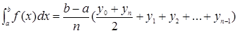 Обозначим через y0, y1 ,y2,…, yn-1, yn значение функции f(x) в точках x0, x1, x2…, xn, то есть, если записать в наглядной формуле: