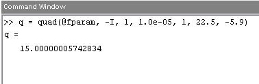 Функции quad и quadl позволяют находить значения интегралов, зависящих от параметров. Аргументами функции, вычисляющей подынтегральное выражение, должна быть не только переменная интегрирования, но и все параметры. Значения параметров указываются через запятую, начиная с шестого аргумента quad или quadl. [1, C.270]