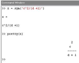 Запись формулы для выражения в одну строку не всегда удобна, более естественный вид выражения выводит в командное окно функция pretty: