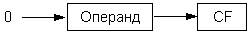 сдвиг осуществляется на 1 бит. Старший бит операнда загружается в его младший разряд и одновременно заносится в флаг CF (рис. 6). Если команда записана в формате