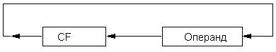 сдвиг осуществляется на число бит, указанное в регистре-счетчике CL, при этом в процессе последовательных сдвигов младшие биты операнда поступают сначала в CF, а оттуда - в старшие биты операнда (рис. 5).