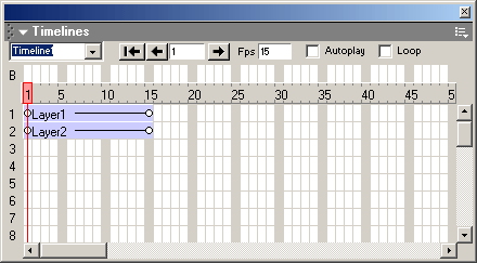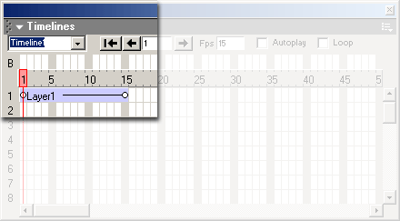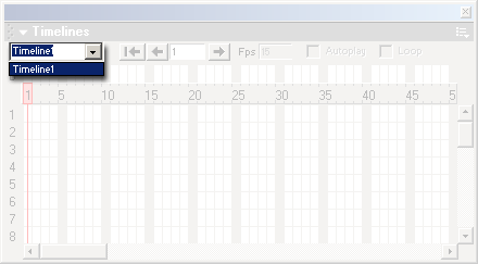 Чтобы создать новую анимацию, надо выбрать пункт Add Timeline контекстного меню панели Timelines. Также можно выбрать одноименный пункт подменю Timeline меню Modify. Если теперь открыть комбинированный список анимаций, видно, что в нем появился новый пункт.