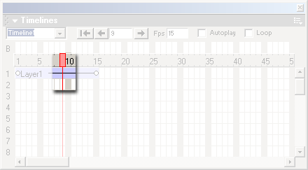 Иногда бывает необходимо растянуть какой-либо участок дорожки на несколько кадров или, наоборот, сузить. Для этого служат пункты Add Frame и Remove Frame, находящиеся в контекстном меню и подменю Timeline меню Modify. Первый пункт вставляет кадр в то место на дорожке, где находится маркер выделенного кадра, а второй — удаляет оттуда кадр.