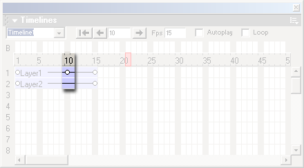 В верхней части панели Timelines находятся несколько еще не знакомых элементов управления. Рассмотрим некоторые из них.