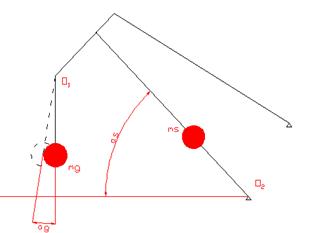 Таким образом, при составлении расчетной схемы для жесткой модели стреловой системы нет необходимости рассматривать все элементы ШСУ по отдельности и можно ограничиться двухмассовой расчетной схемой с двумя обобщенными координатами (Рис. 12).