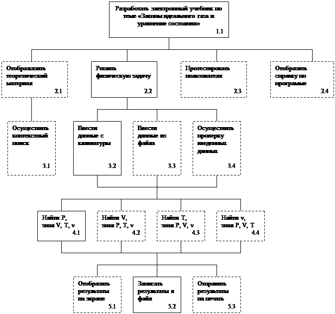 Оглавление альбома документации и условные обозначения Схема состава разложения Разработать электронный учебник по теме «Законы идеального газа и уравнение состояния» Решить физическую задачу Ввести данные с клавиатуры Найти Р, зная V, T, ν Сохранить результаты в файл |