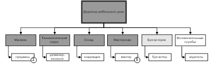 Итак, по самым первым предварительным оценкам мы установили, что автоматизации подлежат функции директора цеха, а так же следующие подразделения: мастерская, магазин, склад материалов, технологический отдел и бухгалтерия. Бухгалтерию мы выделили более светлой тонировкой, т.к. в основном она будет использовать или поставлять информацию для будущей системы. Более подробно остановимся на этом на этапе создания информационной модели предприятия.