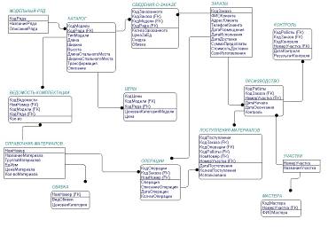 Примечание: В предметной области нет упоминания о складе материалов. Но нам кажется, что функционирование любого предприятия по производству какого-либо вида продукции невозможно без складских помещений. Поэтому позволим себе включить в предметную область мебельного цеха склад материалов с одним сотрудником – кладовщиком.