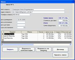 Кнопка «Открыть заказ №» открывает форму оформления заказов (см.рис.5.4).