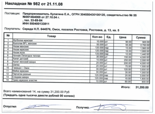 После того как на складе найден необходимый товар, составляется накладная. В накладной указывается наименование товара, его количество, цена и другие параметры.