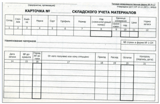 Карточка складского учёта.